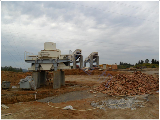 照片為紅河彌勒客戶的鵝卵石制砂生產(chǎn)線的生產(chǎn)現(xiàn)場:該制砂生產(chǎn)線的設(shè)備配置由GZD960×3800振動給料機(jī),PE600×900顎式破碎機(jī),PYB1200圓錐破碎機(jī),VSI1140制砂機(jī),2臺3YA1860振動篩以及XSD2810輪式洗砂機(jī)組成,連接部分由皮帶輸送機(jī)等相關(guān)設(shè)備。